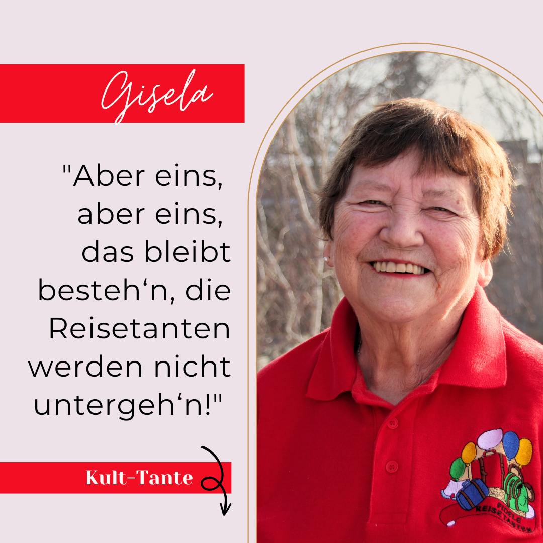 Und wir freuen uns schon jetzt darauf, wenn wir mit Gisela 2028 ihr diamantenes Reisetanten Jubiläum feiern können.