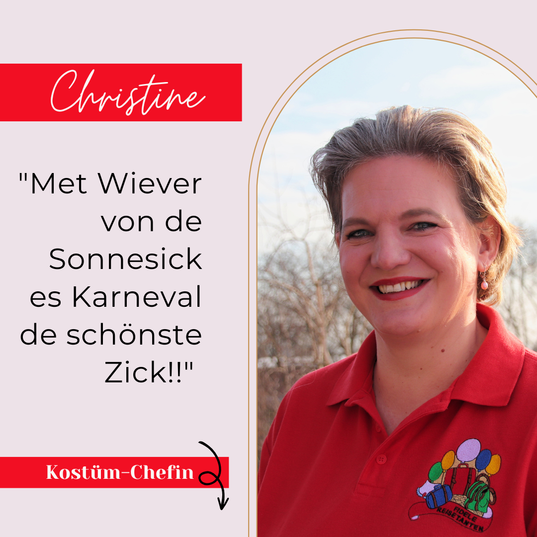 Christine war im Jahr 2009 mit dem Motto: „Met Wiever von de Sonnesick es Karneval de schönste Zick!“ Wäscherprinzessin der Beueler Weiberfastnacht als Mitglied des alten Beueler Damenkomitees von 1824 e.V. Hier war Sie bis 2021 aktiv, bevor sie zu uns wechselte.