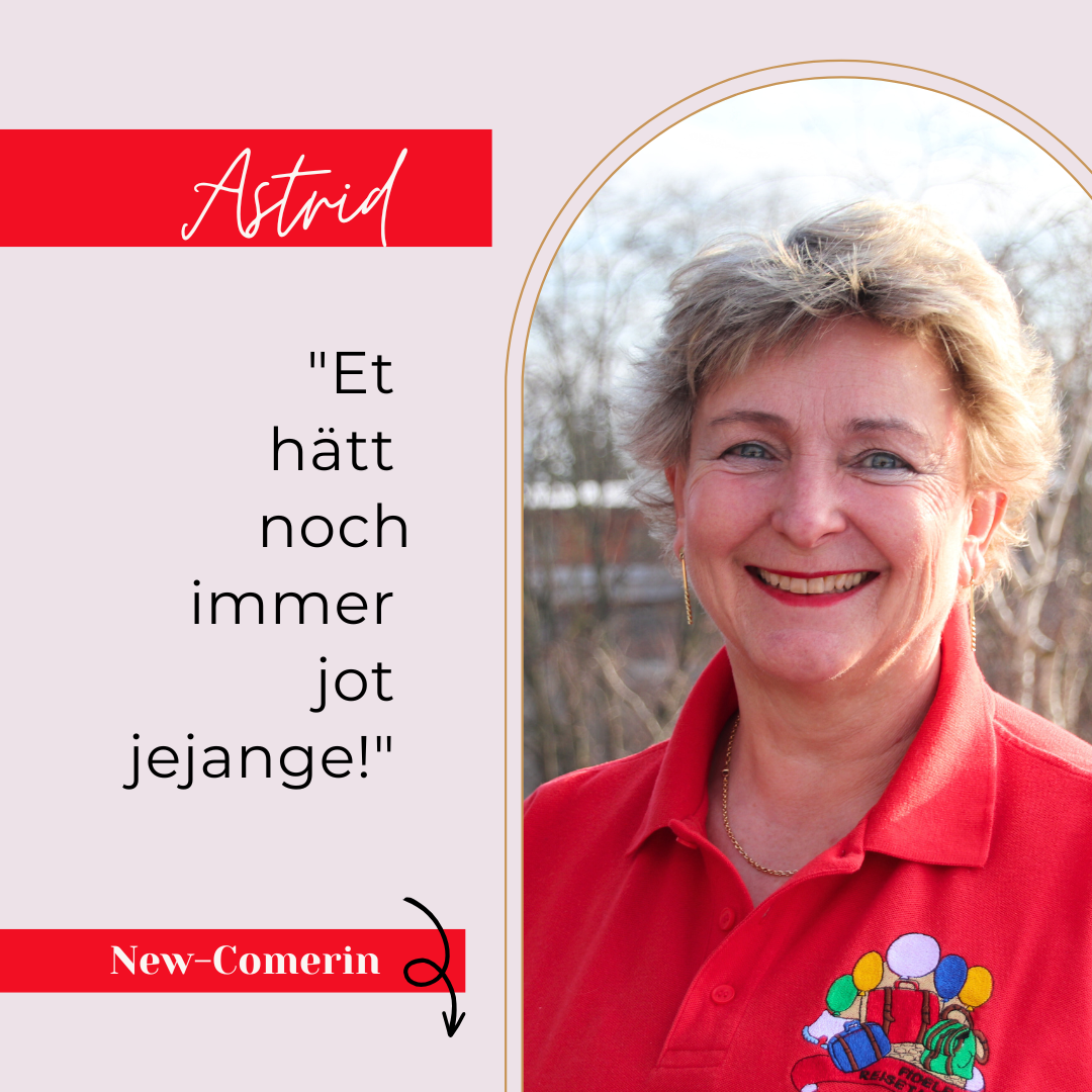 Astrid war eine der jecken Frauen im Publikum, die uns angefeuert haben. Ihr hat es so gut gefallen, dass sie den Entschluss gefasst hat zu fragen, ob Sie ein Teil von uns werden könnte.