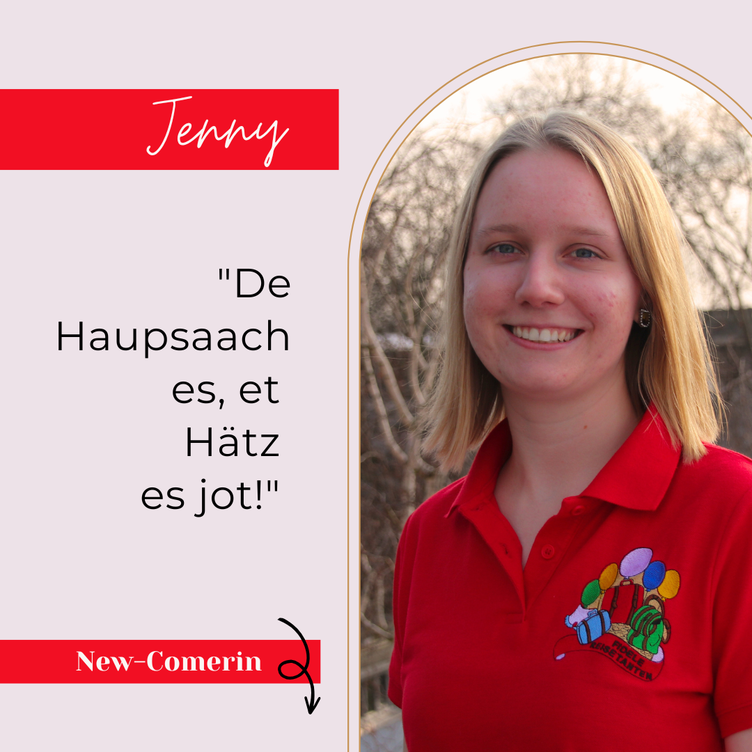 In Jenny schlummert eine ganz besondere Tanz-Maus: Sie hat früher bei der Ehrengarde der Stadt Bonn getanzt. Kein Wunder also, dass sie mit Bea ein gutes Team bildet und so dieses Jahr nicht nur an unserem Einmarsch für die Sitzung choreografisch beteiligt ist, sondern auch in der ein oder anderen Tanz-Nummer auf der Bühne stehen wird.