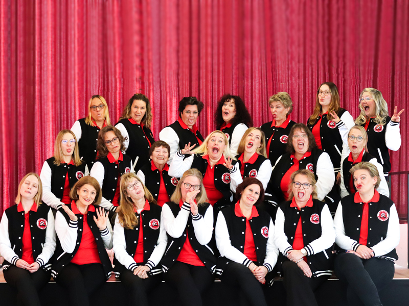 Melanie steht schon die zweite Session mit den Reisetanten auf der Bühne. Sie hat sich gedacht: Abends zu Hause sitzen ist mir zu langweilig, wenn sich in meiner Nachbarschaft die Fidelen Reisetanten zum Proben treffen.