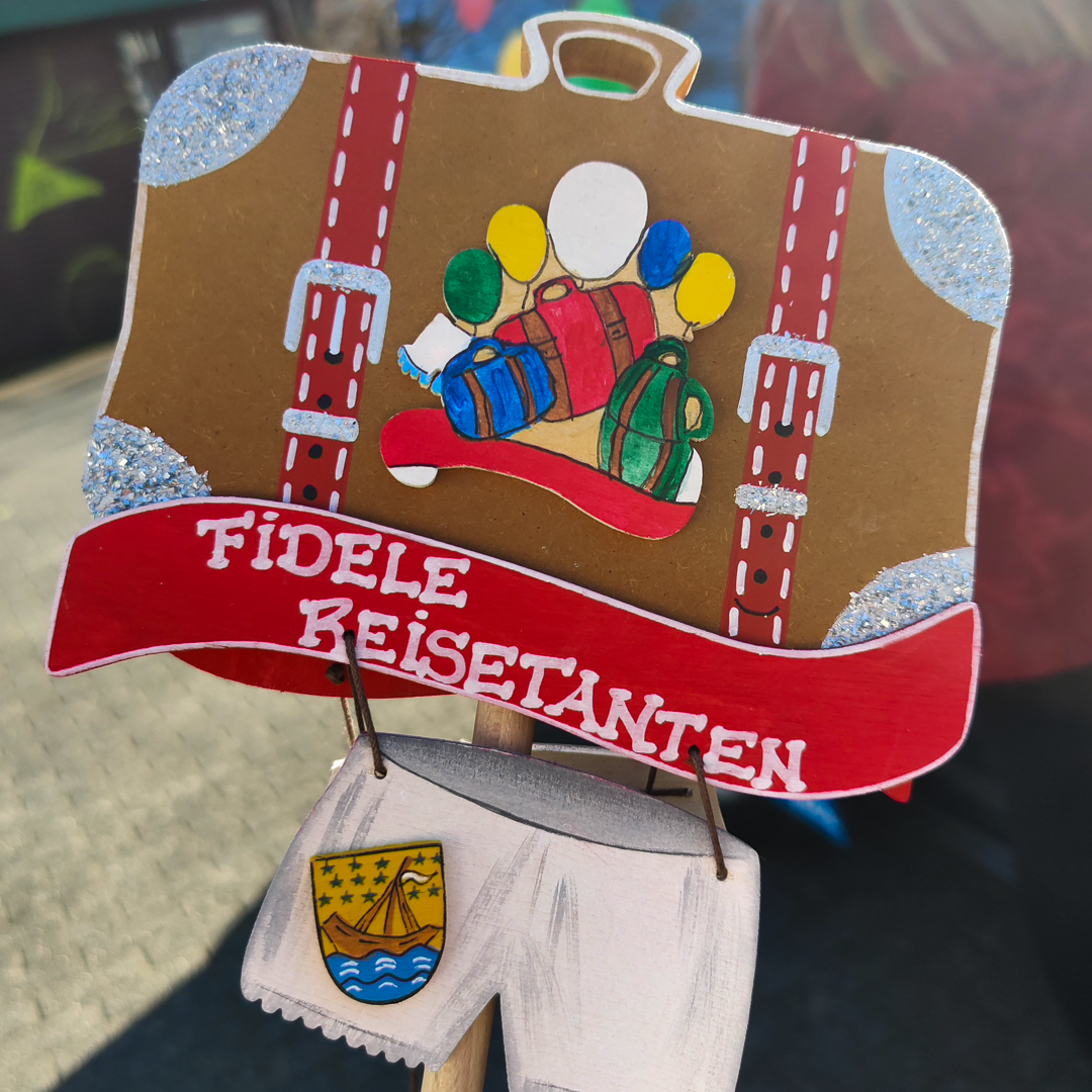 Unser Winkestab ist unser besonderes Markenzeichen und treuer Begleiter. Er besteht aus einem großen Koffer, als Sinnbild für unseren Namen und unsere liebste Freizeitbeschäftigung: Das Reisen.